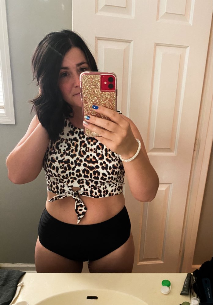 love this swimsuit!!! I did have to take up to top size with my sewing machine but that's purely because my waist was for a size small and my boobs are too big so I ordered a large. so comfortable and don't have to worry about my boobs falling out!!!