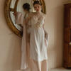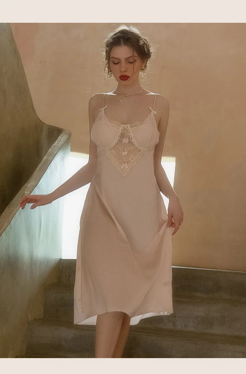 • Lace Detailing: Delicate lace accents along the neckline and hem add a feminine touch, enhancing the overall elegance of the nightgown.